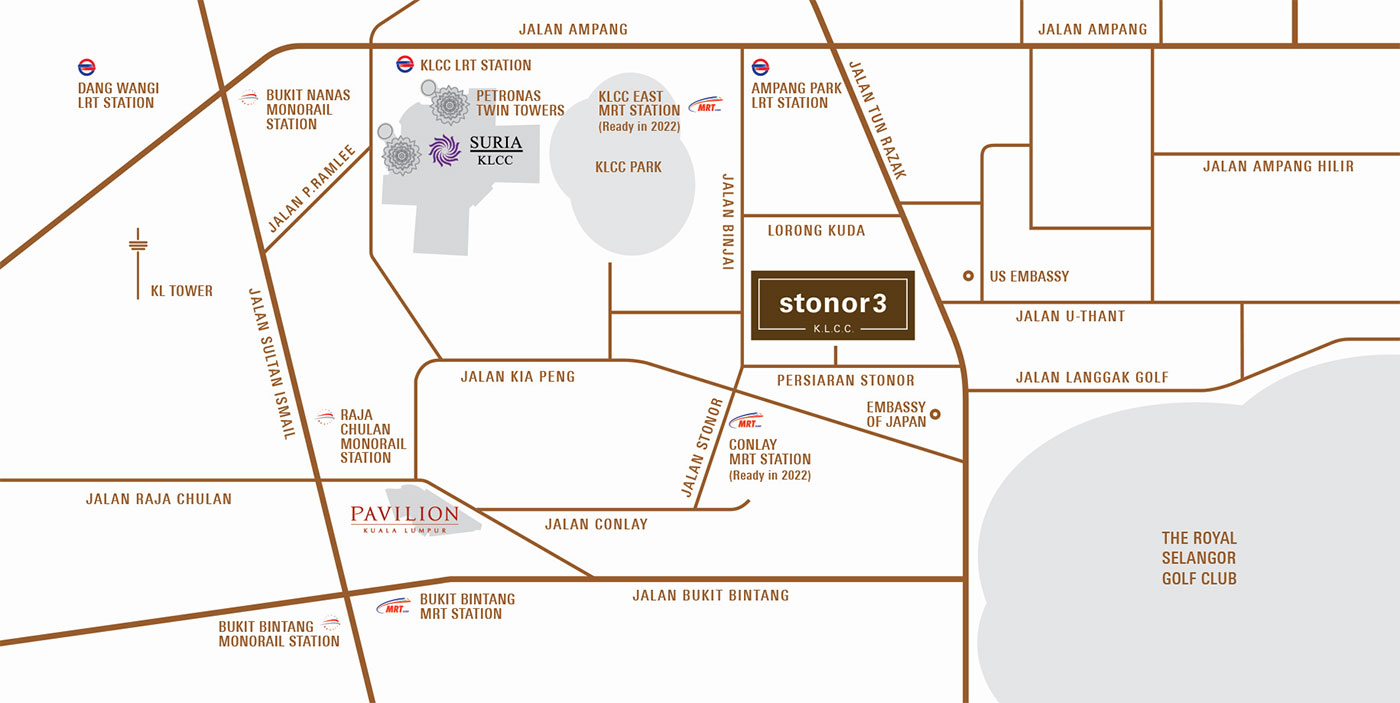 Stonor3 KLCC offers you a rare chance to own a luxury property in the coveted Kuala Lumpur City Centre precinct. Just a 10-minute leisurely walk to the KLCC Park and iconic Petronas Twin Towers. It is also situated within walking distance to the future MRT station.